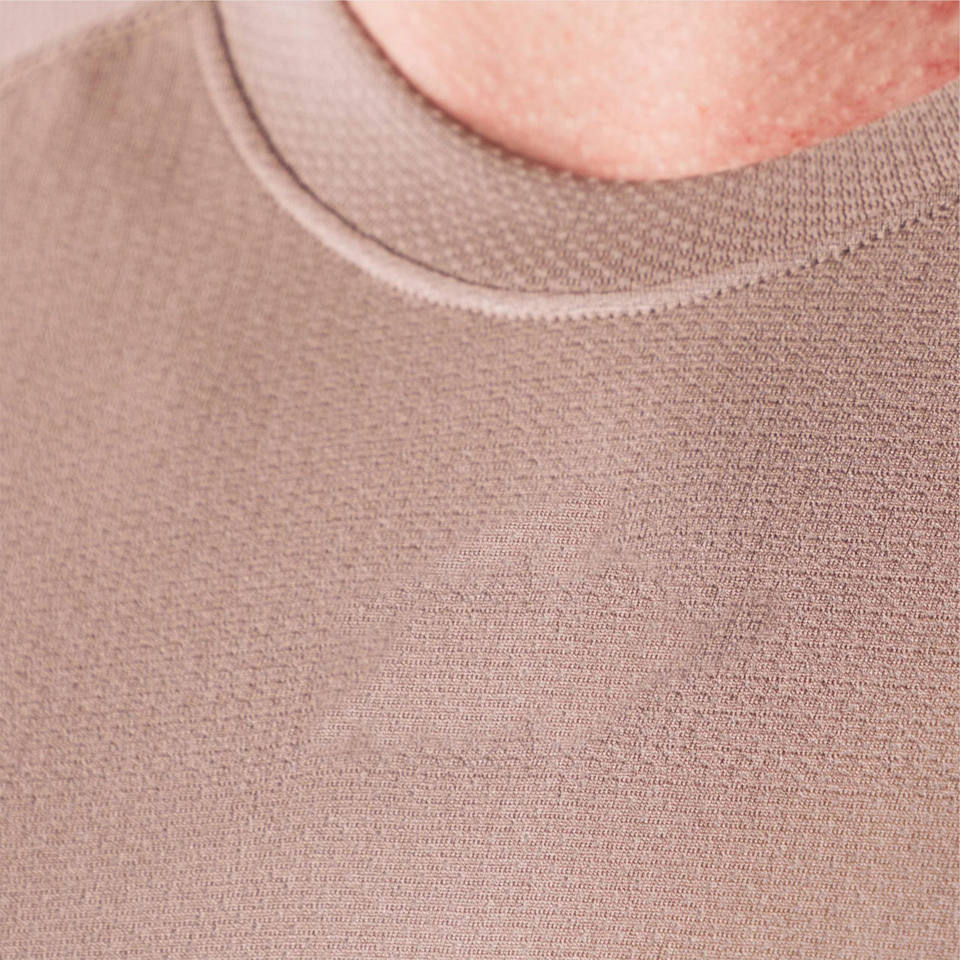 ผ้าฝ้าย 94% 6% สแปนเด็กซ์ลายเซ็นประสิทธิภาพติดตั้ง Raglan ตัดแขนสั้นลูกเรือคอผู้ชายไหล่เสื้อยืด