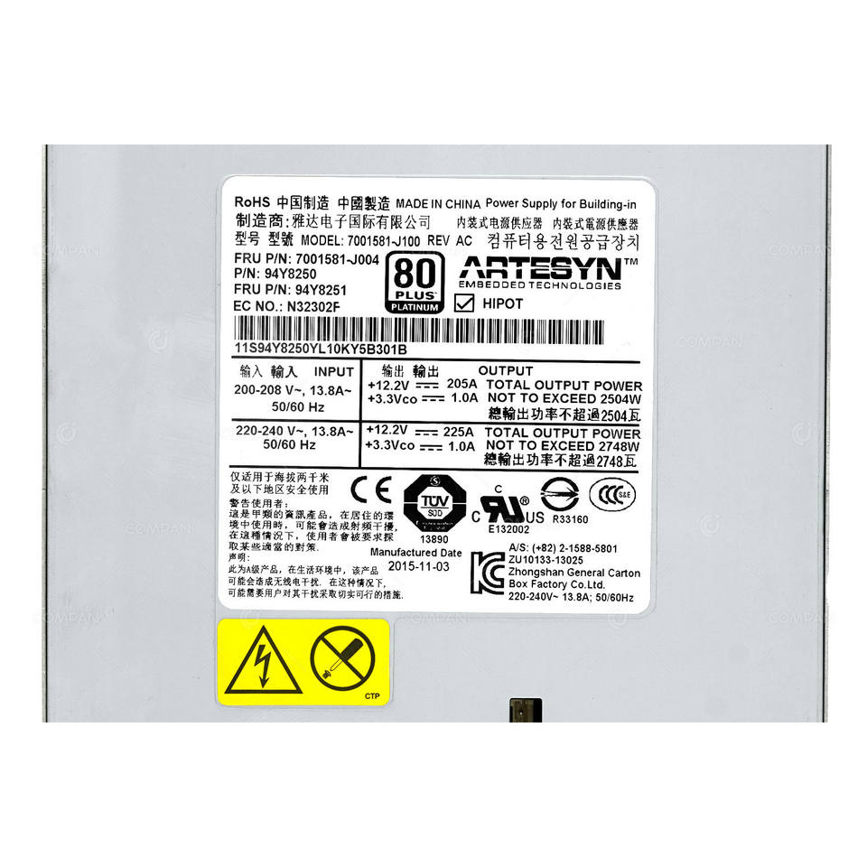 94Y8251 แหล่งจ่ายไฟ IBM 2500W 80 PLUS PLATINUM สำหรับโครงเครื่อง FLEX SYSTEM ปรับปรุงใหม่