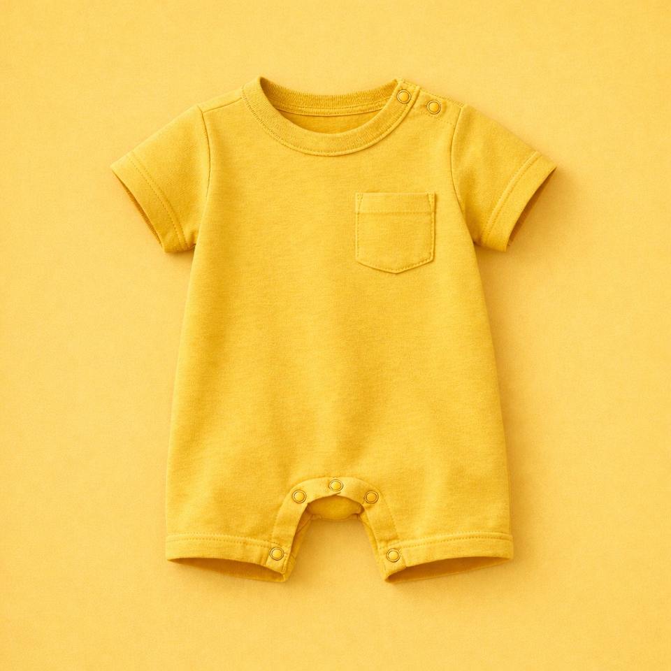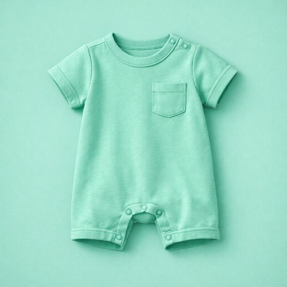 ชุดรอมเปอร์เด็กอ่อน แขนสั้น ผลิตจากใยไผ่ 95% และสแปนเด็กซ์ 5% เนื้อผ้านุ่มพิเศษ ระบายอากาศได้ดี ป้องกันรอยยับ ติดกระดุมแป๊ก
