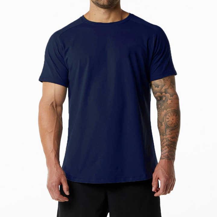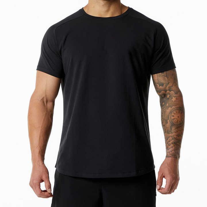 เสื้อยืดผ้าฝ้าย95% 5% สแปนเด็กซ์คุณภาพสูงสีดำสำหรับใส่เล่นกีฬา