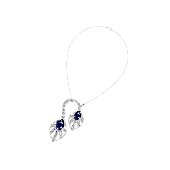 950แพลทินัม (Pt950) สร้อยคอขนาด16นิ้วพร้อมจี้ไพลินสังเคราะห์รูปหยดน้ำและเครื่องประดับที่มีเสน่ห์