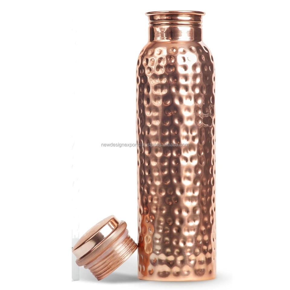 ขวดโลหะเคลือบด้วยทองแดงขนาด950มล. ภูมิปัญญาโบราณมาพร้อมกับฝาปิดแบบใช้แล้วทิ้งสำหรับดื่มน้ำแบบควอนตัม