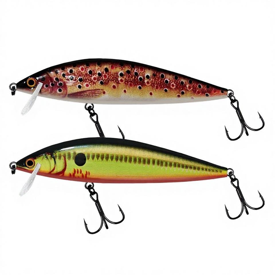 เหยื่อตกปลาแบบจมน้ำ ขนาด 95 มม. น้ำหนัก 13 กรัม รุ่น Countdown 95S สำหรับปลาเทราต์ในแม่น้ำ วัสดุ ABS แข็ง ผลิตด้วยเทคโนโลยี 3D พิมพ์ลาย สมจริง ใช้ตกปลาเทอราต์และปลานิล รุ่น HCM04