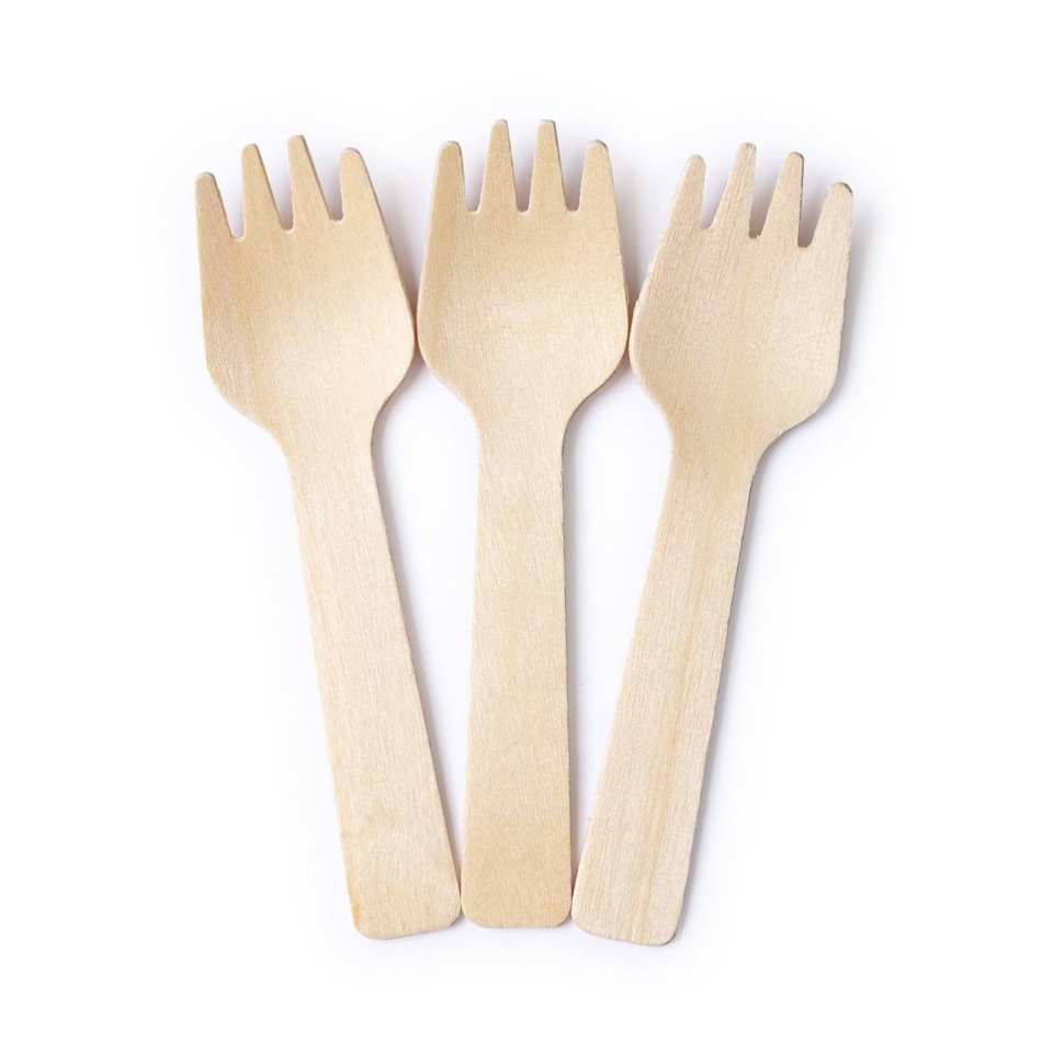 95mm Disposable Wooden Fork Biodegradable Eco-Friendly Tableware for Outdoor Catering Food Delivery and Event Services