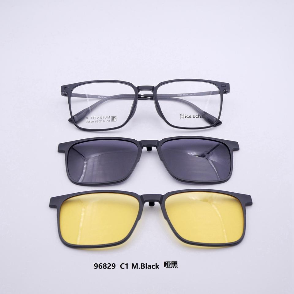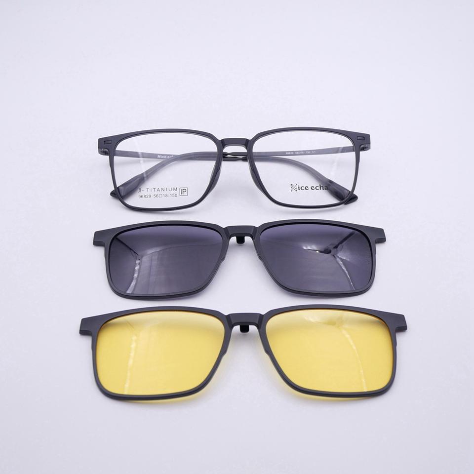 กรอบแว่นตา96829กรอบพลาสติกเหล็กไทเทเนียมสำหรับผู้ชายกรอบแว่น3 in 1แบบแม่เหล็ก