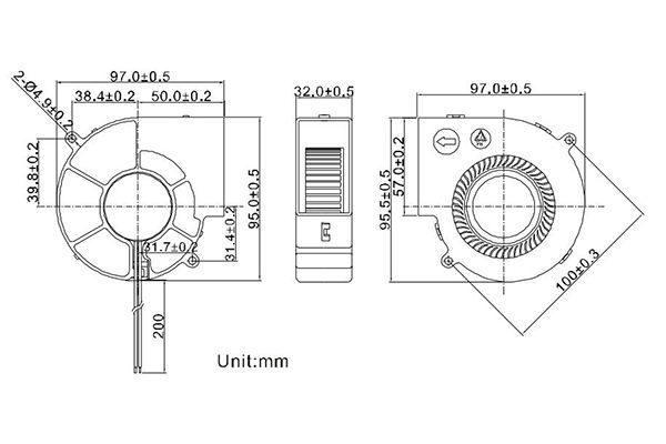 พัดลมเป่าหอยทากระบายความร้อนด้วยอากาศลักษณะ