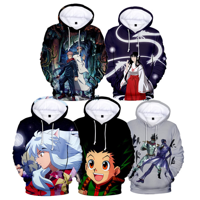 97 รูปแบบที่กําหนดเองเด็กผู้ใหญ่เสื้อJoJosผจญภัยแปลก Jujutsu Kaisen Himouto Umaru-Chan InuyashaอะนิเมะHooded Hoodies