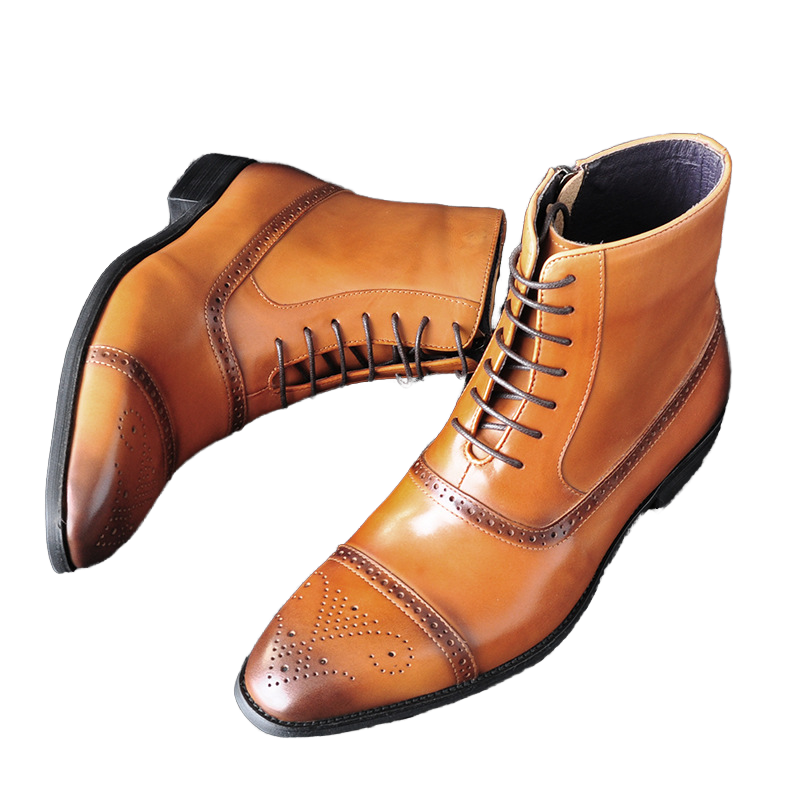 รองเท้าบูทหนังผู้ชาย 9727 คุณภาพดี ดีไซน์หัวแหลม เหมาะสำหรับธุรกิจและงานปาร์ตี้ ปิดด้วยเชือกผูก พื้นรองเท้าด้านในทำจากอีวีเอ