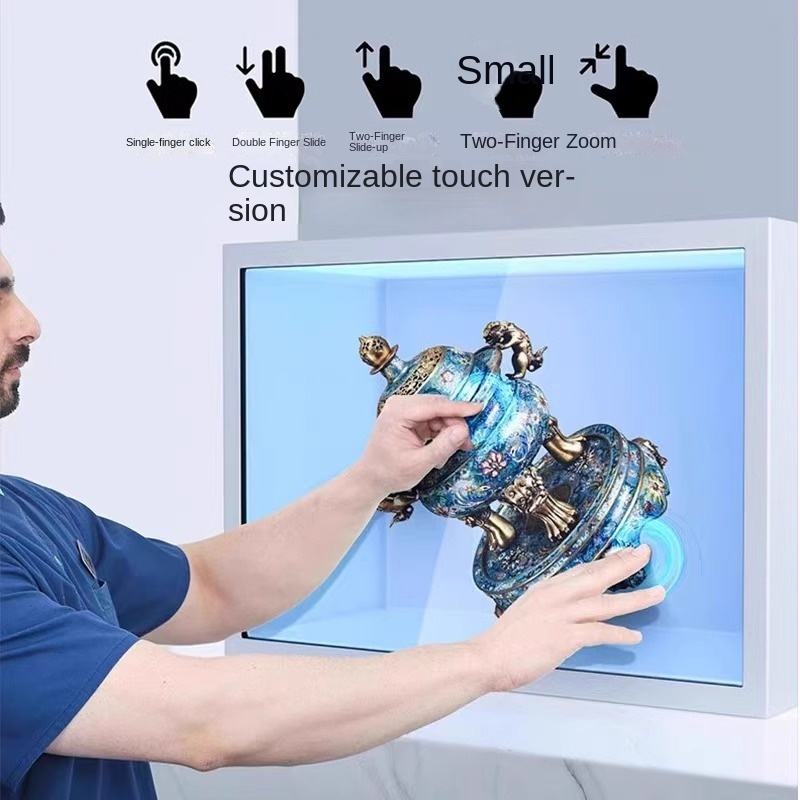 ตู้แสดงผล LCD โปร่งใสขนาด 98 นิ้ว ห้องโฮโลแกรม จอภาพ 3 มิติ ควบคุมด้วยเสียง AI ระบบสัมผัส แอนิเมชั่น CMS สำหรับกิจกรรม ตัวแทนจำหน่าย OEM