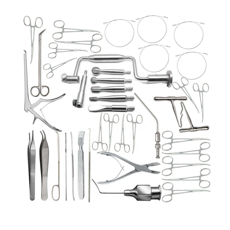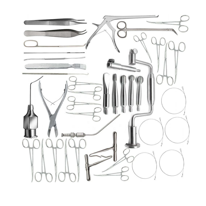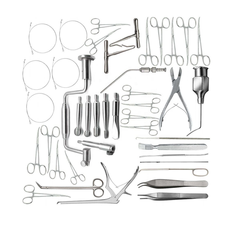 ชุดเครื่องมือผ่ากะโหลกศีรษะพื้นฐาน 98 ชิ้น ทำจากสแตนเลสสตีล คุณภาพสูง สำหรับศัลยกรรมประสาท พร้อมคู่มือการใช้งาน