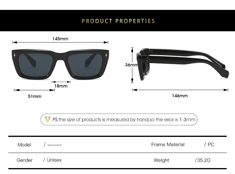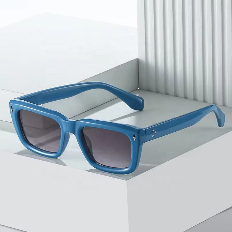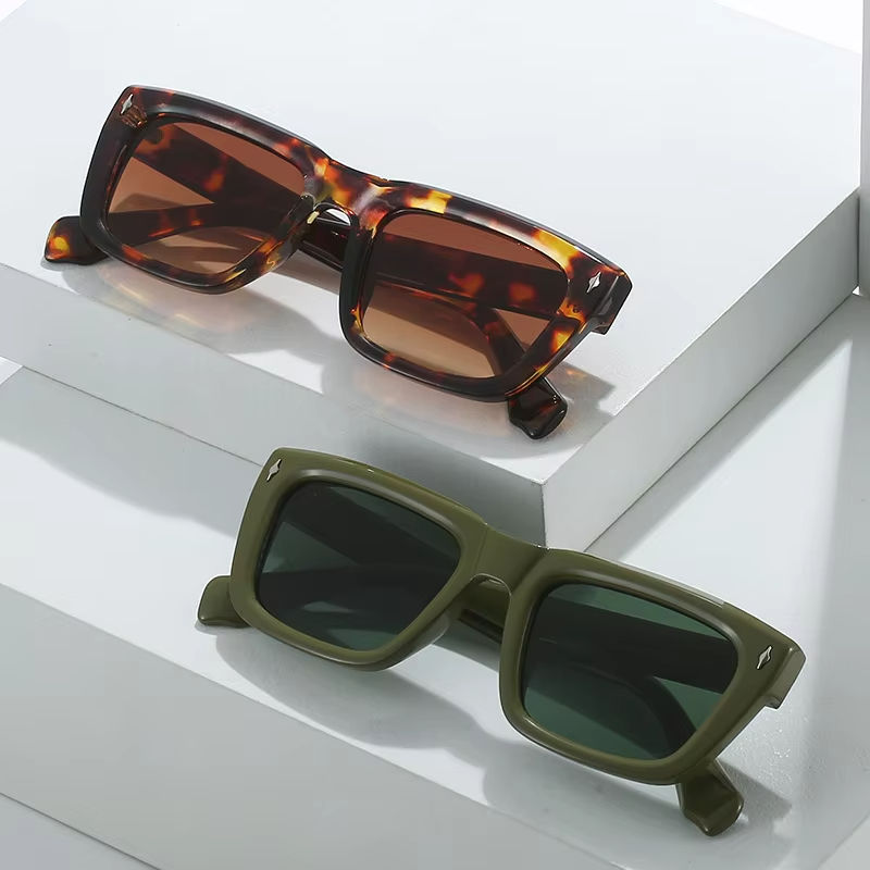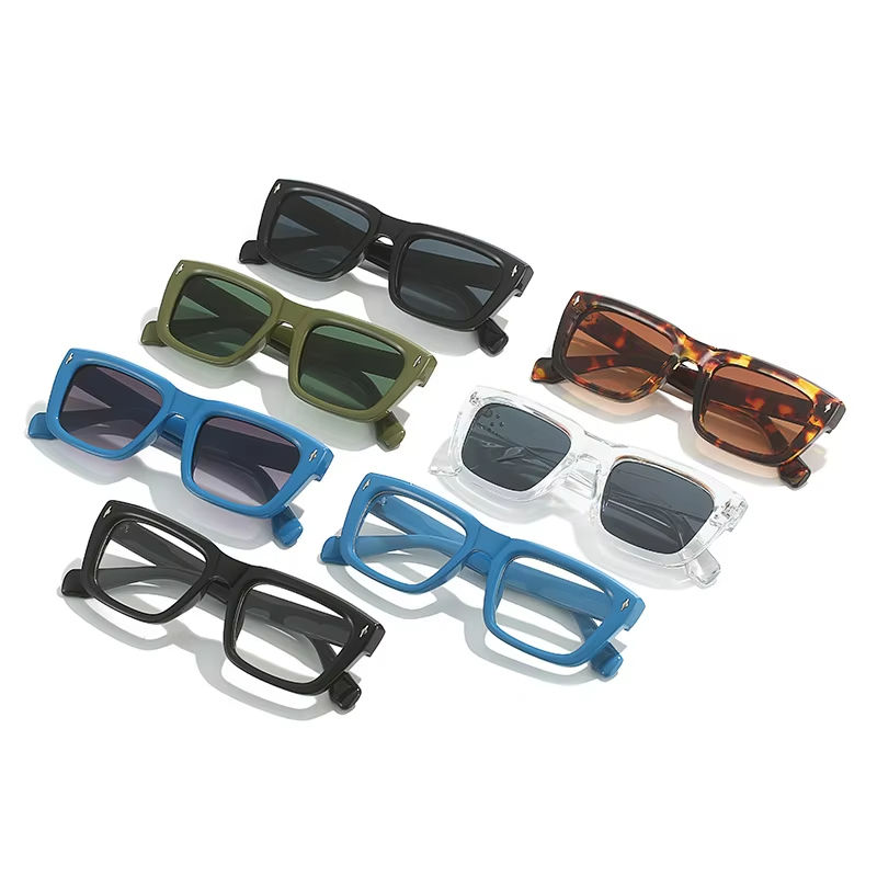 แว่นกันแดดทรงเหลี่ยมดีไซน์เรโทรเรียบง่าย รุ่น 9821 กรอบหนา ป้องกันรังสียูวี 400 คลาสสิก รับสกรีนโลโก้ แฟชั่นประดับหมุด