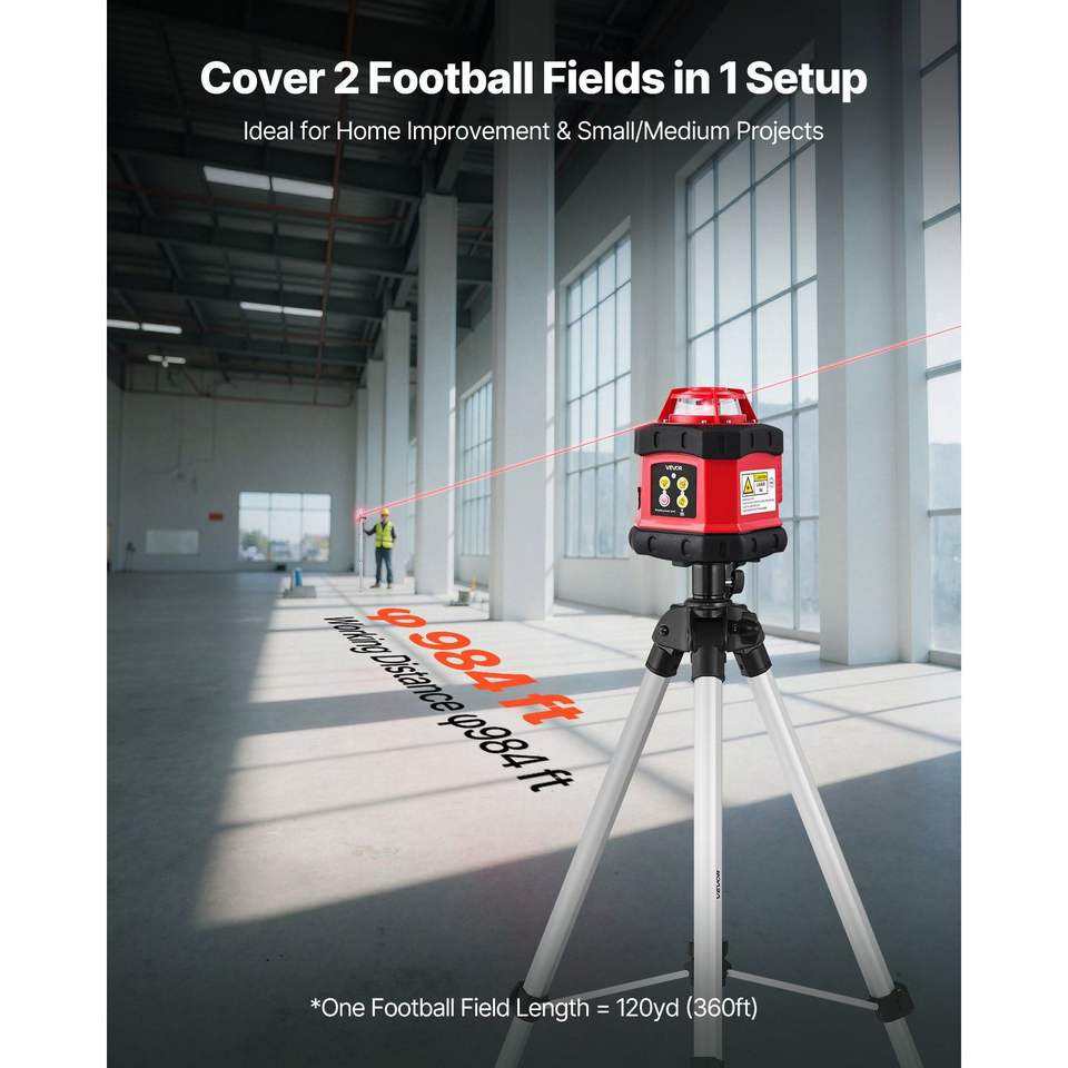ชุดเลเซอร์ระดับหมุนได้ 360 องศา ระยะ 984 ฟุต พร้อมขาตั้งกล้อง ตัวรับสัญญาณ รีโมทคอนโทรล และสเกลวัดระยะ พร้อมเลเซอร์แนวนอน 360 องศา