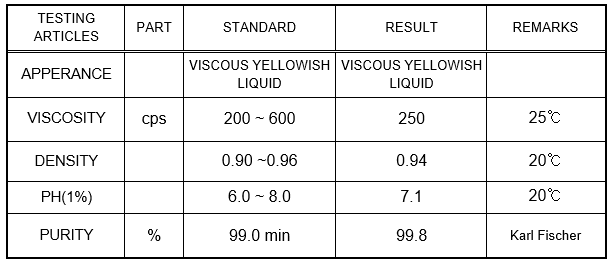 ความถ่วงจำเพาะ:[25 ℃] 0.94(± 0.02)