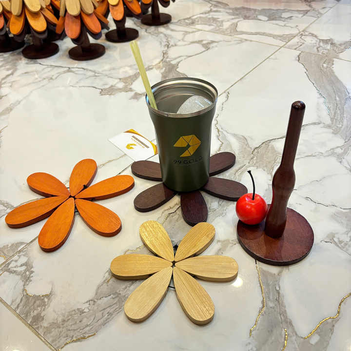 แผ่นรองแก้วไม้ธรรมชาติ 99 Gold Data สำหรับวางแก้ว จาน หม้อ ใช้บนโต๊ะอาหาร MOQ ต่ำ จากเวียดนาม-โดยคุณไวโอเล็ต