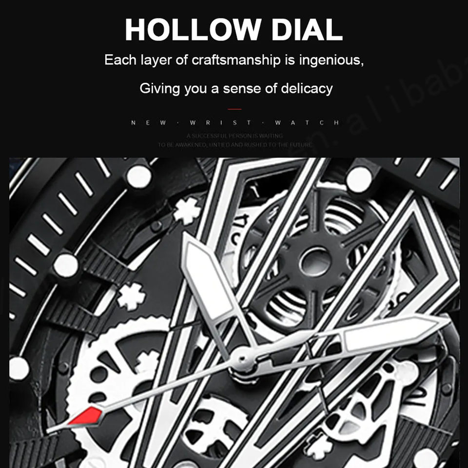 นาฬิกาควอตซ์โครโนกราฟหรูหราสำหรับผู้ชาย สายซิลิโคนสแตนเลสสตีลเรืองแสง กันน้ำ 3ATM สั่งทำโลโก้ได้ MOQ ต่ำเพียง 995 เรือน
