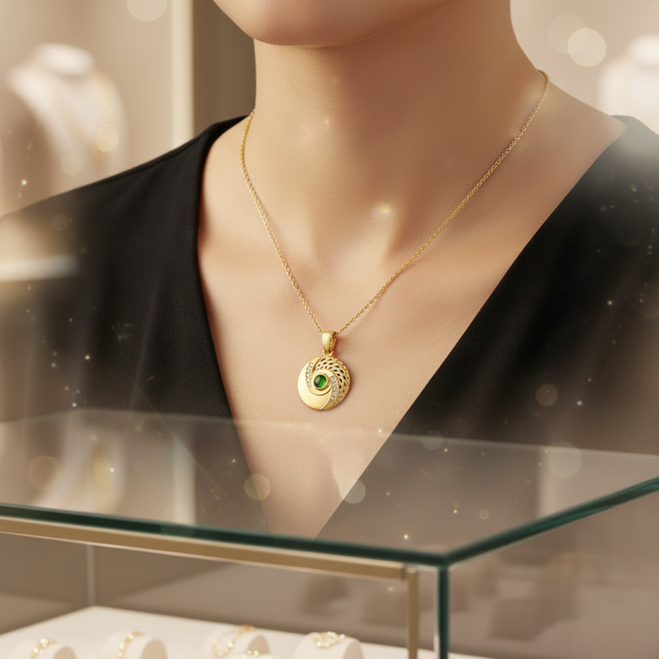 999 Pure Gold Orthodox Luxury Natural A-Grade Jadeite Feicui Pendant Necklace with Mom's Style Design