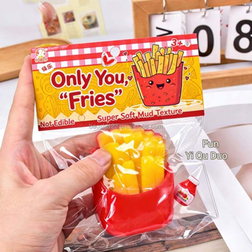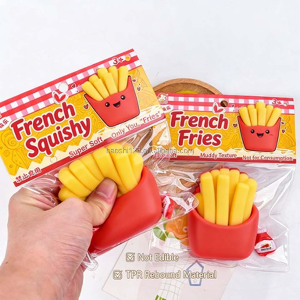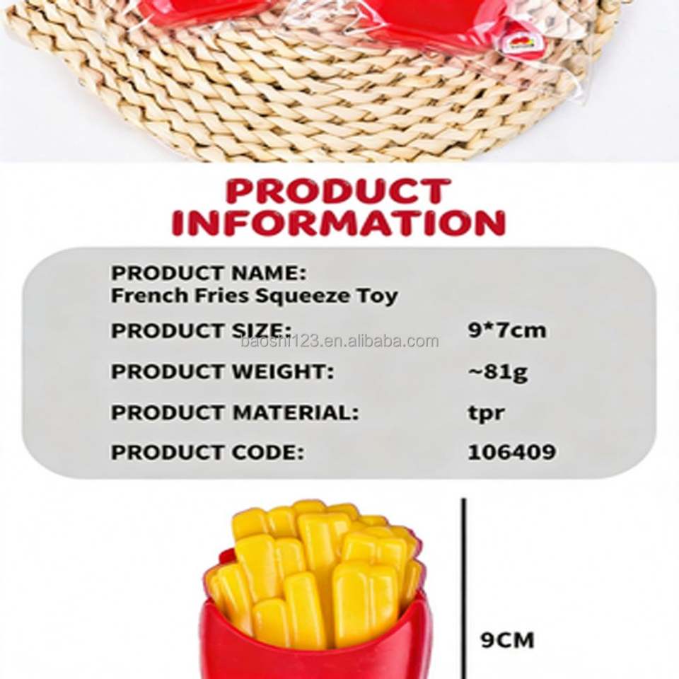 ของเล่นบีบมือรูปเฟรนช์ฟรายส์ TPR ขนาด 9 ซม. เนื้อนุ่มคล้ายดินเหนียว ของเล่นเสริมพัฒนาการ น่ารัก บรรเทาความเครียด สำหรับเด็กและผู้ใหญ่ บรรจุในถุง PVC ไม่มีของเหลว ไม่มีเจล
