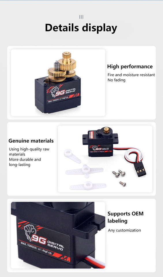 มอเตอร์เซอร์โวดิจิตอลเกียร์โลหะแรงบิดสูง9ก. เหมาะสำหรับหุ่นยนต์โดรน FPV ควบคุมระยะไกลแบบ DIY