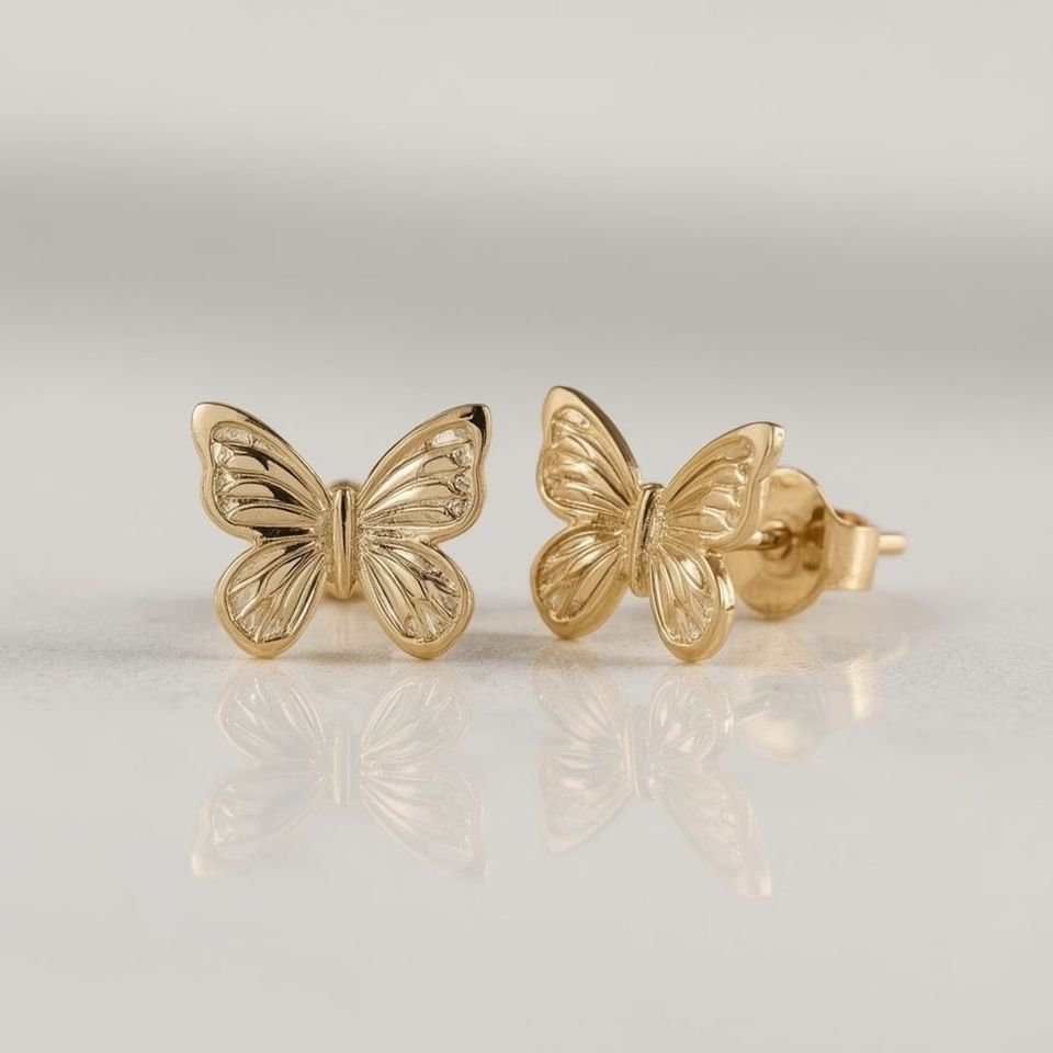 ต่างหูแบบติดหูรูปผีเสื้อ ดีไซน์ทันสมัย ทอง 9K สำหรับผู้หญิง เครื่องประดับเรียบหรู ทองแท้ ดีไซน์น่ารัก ใส่ได้ทุกวัน ตัวเลือกแพลตตินัม รับผลิตแบบ OEM