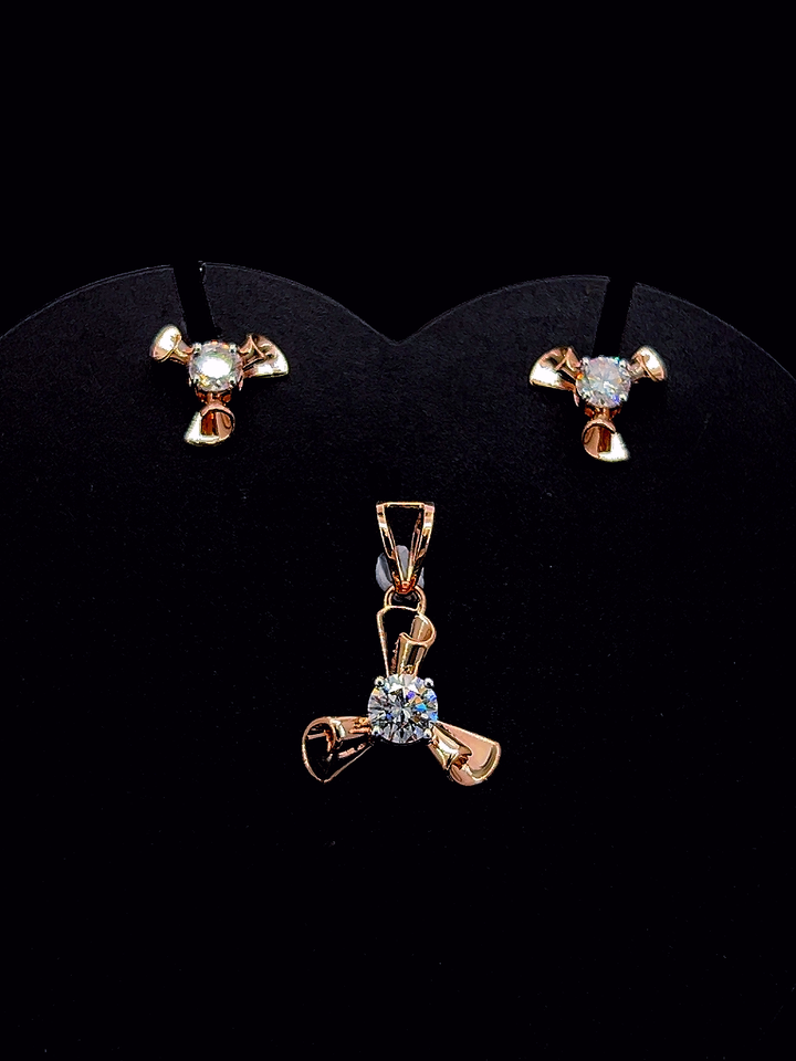 ชุดเครื่องประดับเพชรระยิบระยับทองคำ 9K สีโรสโกลด์ - ของขวัญงานแต่งงานสำหรับผู้หญิงสุดหรู ดีไซน์สามประกายสีทองอร่าม ซีเลสเต้ ออโรร่า ทริปเปิ้ลสปาร์ค