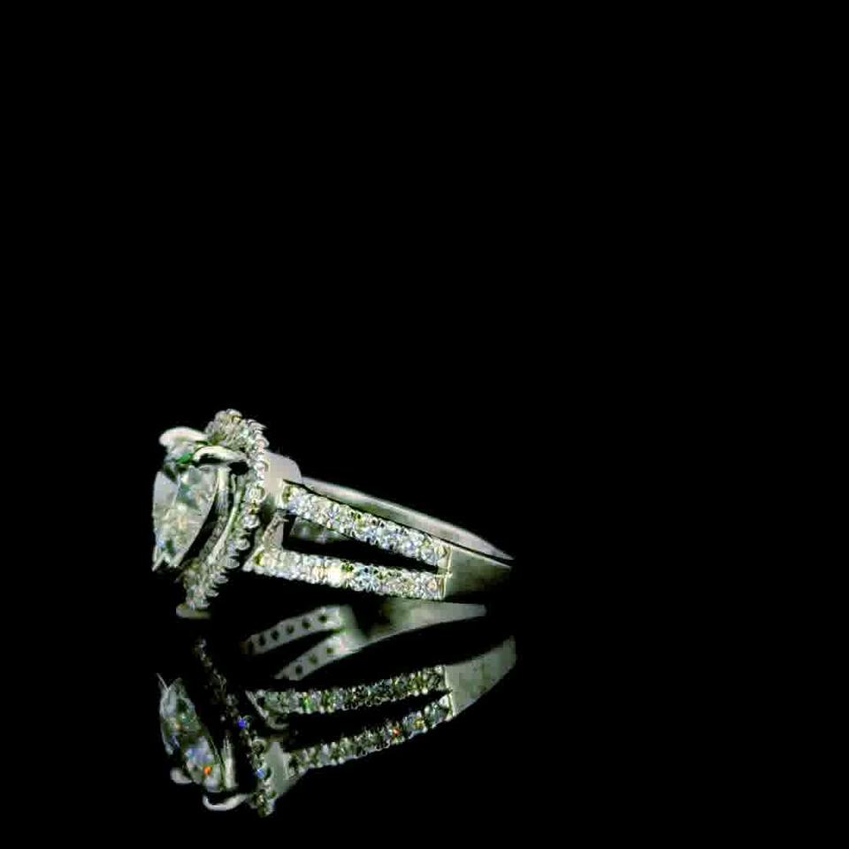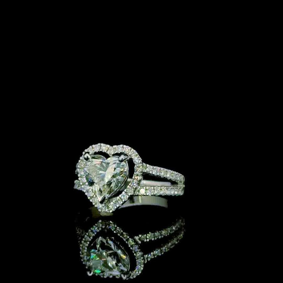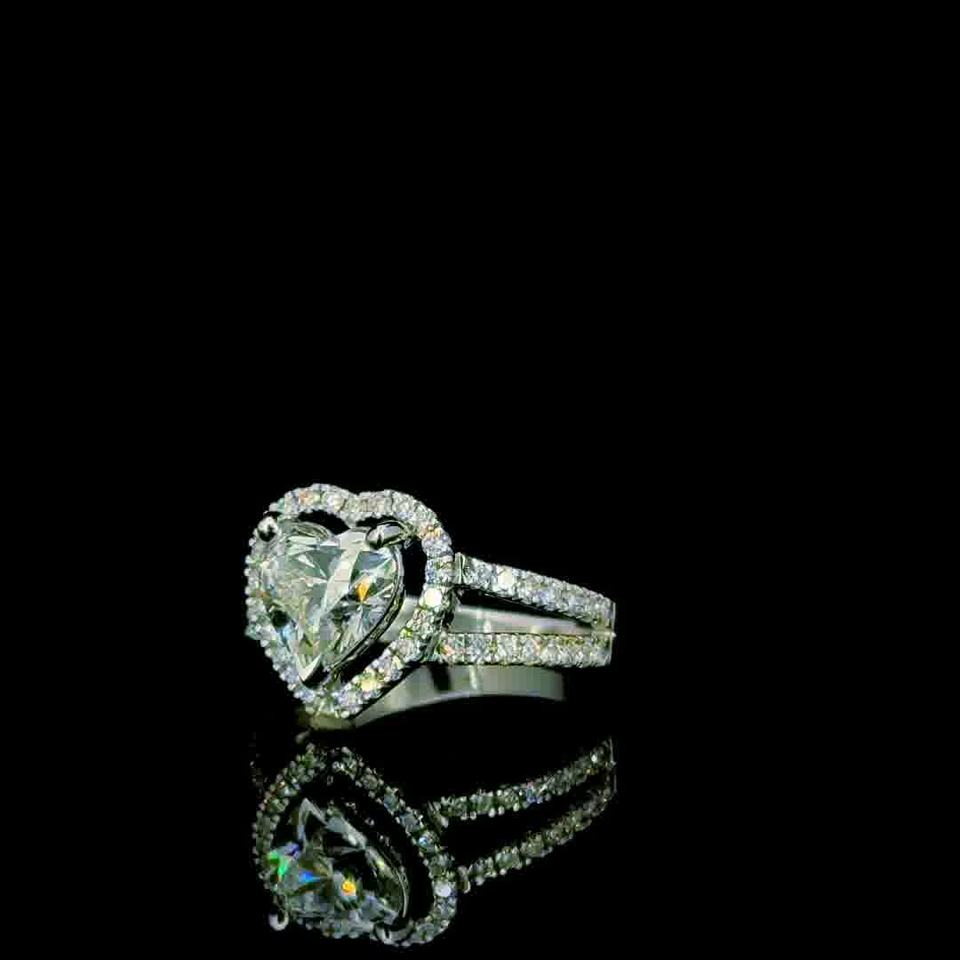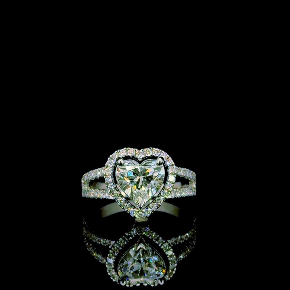 แหวนหมั้นดีไซน์ทันสมัยรูปหัวใจประดับเพชรแล็บโกรว์ ชุบโรเดียมบนทองคำขาว 9K แหวนหรูหราโรแมนติก