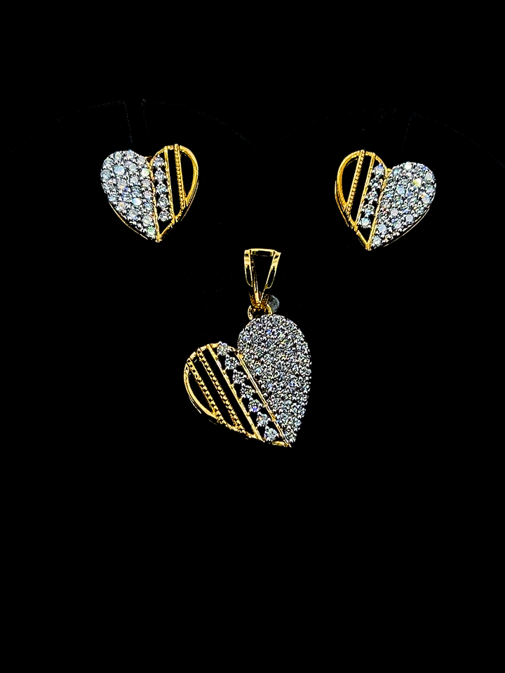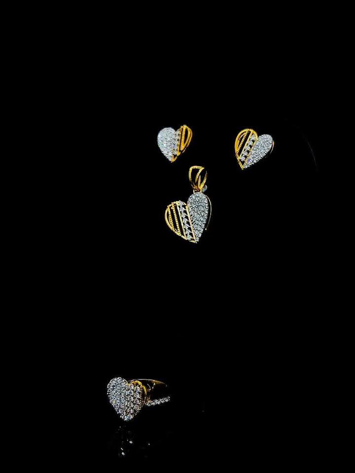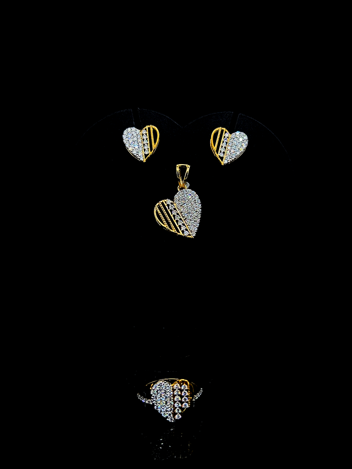 9K Yellow Gold Dual-Tone Heart Diamond Jewelry Set Pendant/Earrings/Ring-Wedding & Party Luxury Jewelry with Everlasting Shine