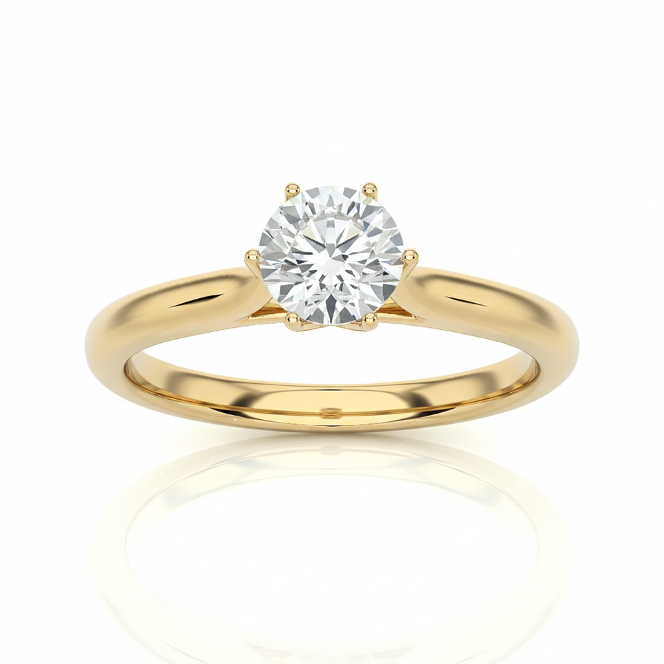 9K Yellow Gold IGI Certified VS1 F Color 1-5 CT Round Brilliant Cut Lab Grown Diamond Prong Setting Solitaire Ring For Women