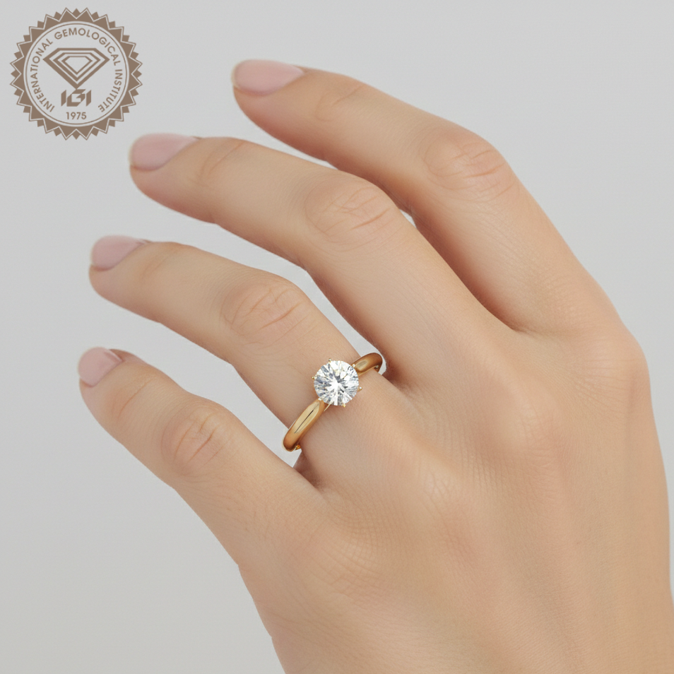 แหวนเพชรทรงกลมเจียระไนแบบบริลเลียนท์ น้ำหนัก 1-5 กะรัต สี D ความสะอาด VVS1 ทองคำ 9K แท้ รับรองโดย IGI เพชรเพาะเลี้ยงในห้องปฏิบัติการ ตัวเรือนแบบหนามเตย สำหรับผู้หญิง