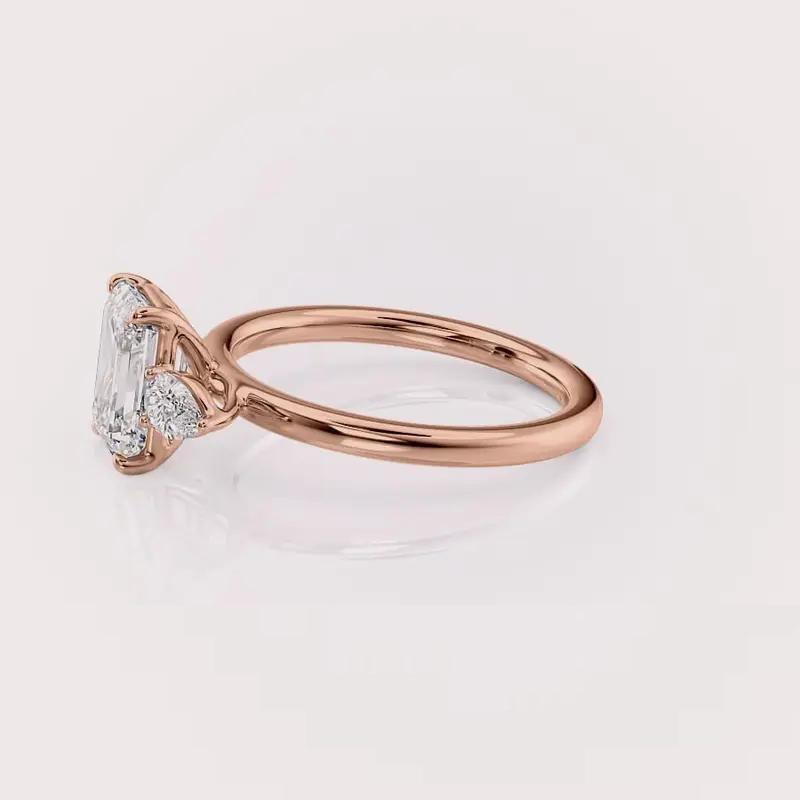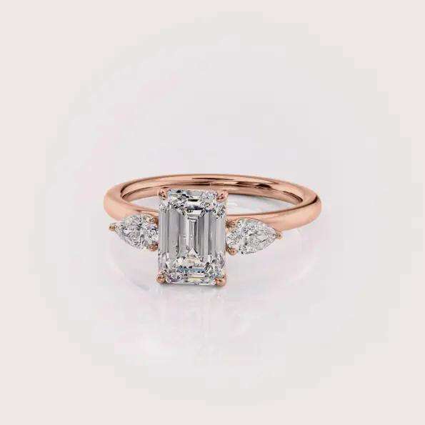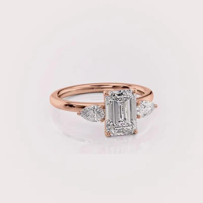 ผู้ผลิตแหวนหมั้นเพชรทรงเหลี่ยมมรกตสีเหลือง/ขาวและโรสโกลด์ 9K เพชรเลี้ยงในห้องปฏิบัติการแบบสามเม็ด