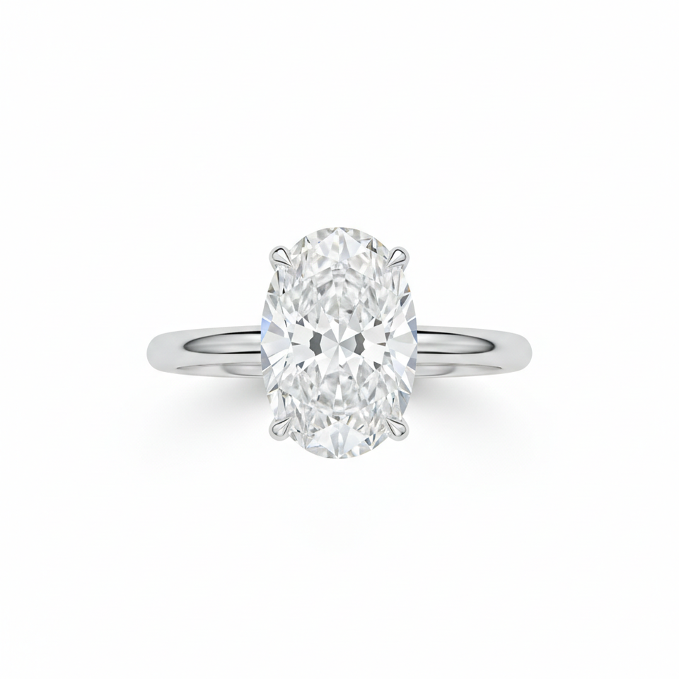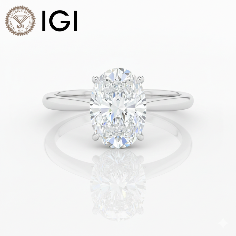 แหวนหมั้นเพชรทรงรี VS1 เพชรเลี้ยงในห้องปฏิบัติการ ชุบทองคำขาว 9KT ยี่ห้อ ANIVA ประดับเพชรแบบ Prong Set รับรองโดย IGI สำหรับผู้หญิงยุคใหม่
