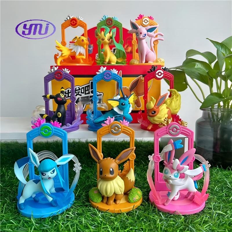 หุ่นฟิกเกอร์ตัวการ์ตูนน่ารักลายการ์ตูน eevee espeon leafeon สำหรับสะสมกล่องปริศนาตัวการ์ตูนขนาด9ชิ้น/เซ็ต