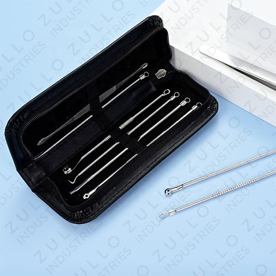 ชุดอุปกรณ์กำจัดสิวเสี้ยนและสิวอักเสบสแตนเลสสตีลระดับมืออาชีพ 9 ชิ้น พร้อมอุปกรณ์ทำความสะอาดรูขุมขนอย่างล้ำลึก รับทำโลโก้ตามสั่ง
