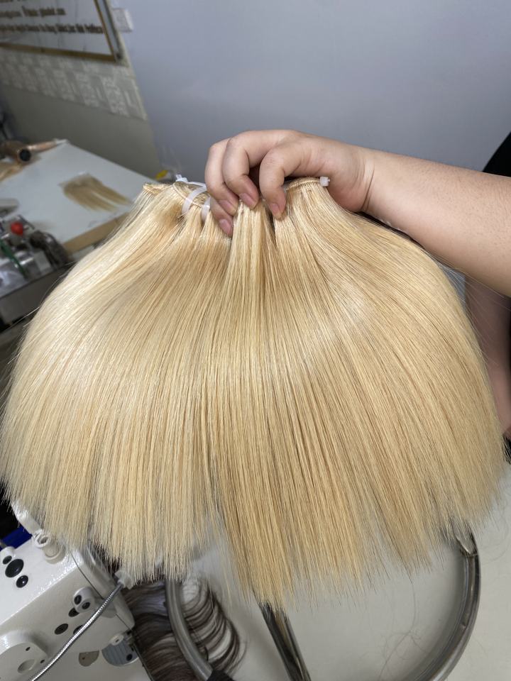 แฮร์พีซผมมนุษย์9A 10A กระดูก12A ผมตรงสีบลอนด์มัดผมมนุษย์