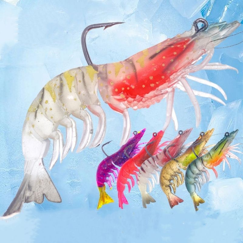 เหยื่อตกปลารูปกุ้งนิ่มจำลองสูง9ซม./8ซม. เหยื่อล่อกุ้งนุ่มนิ่มเรืองแสง