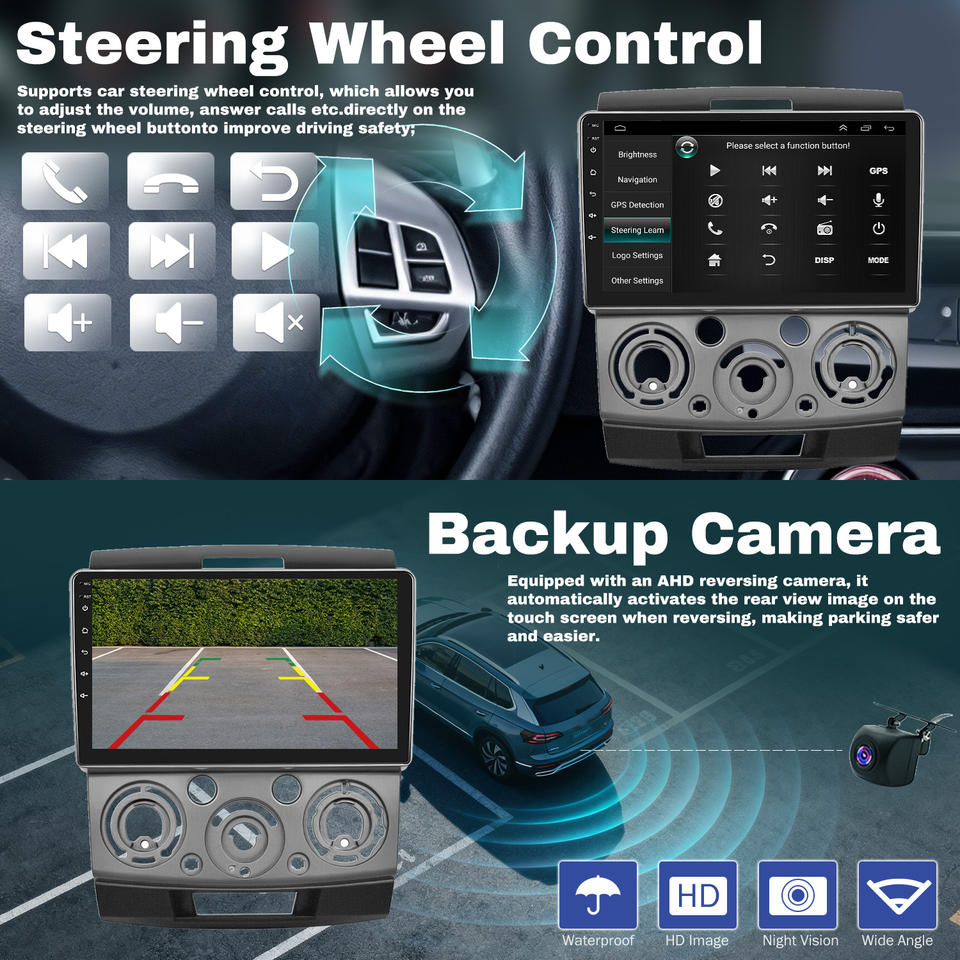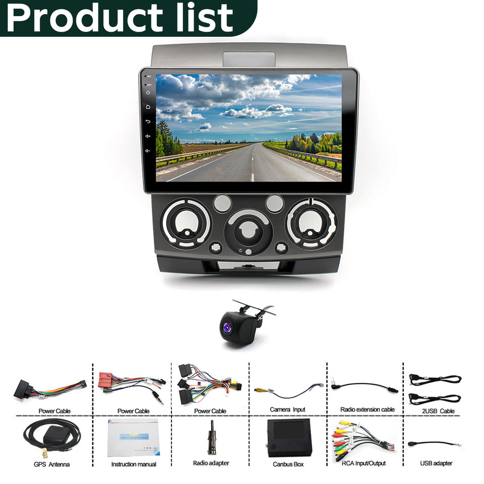 หน้าจอรถยนต์ขนาด 9 นิ้ว ระบบแอนดรอยด์ 13 เครื่องเสียงติดรถยนต์สำหรับ Mazda BT50/ Ford Ranger ปี 2001-2011 พร้อมระบบนำทาง GPS หน่วยควบคุมหลัก 2+32G รองรับ Carplay