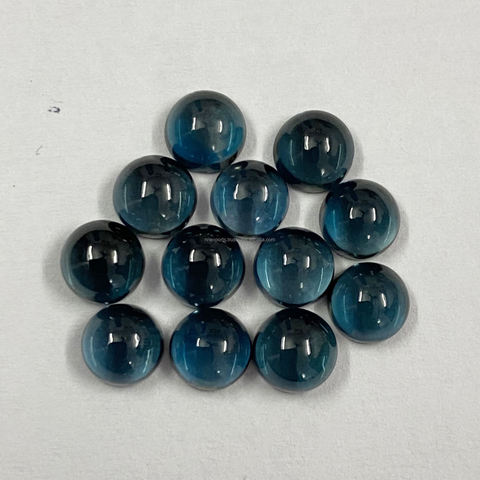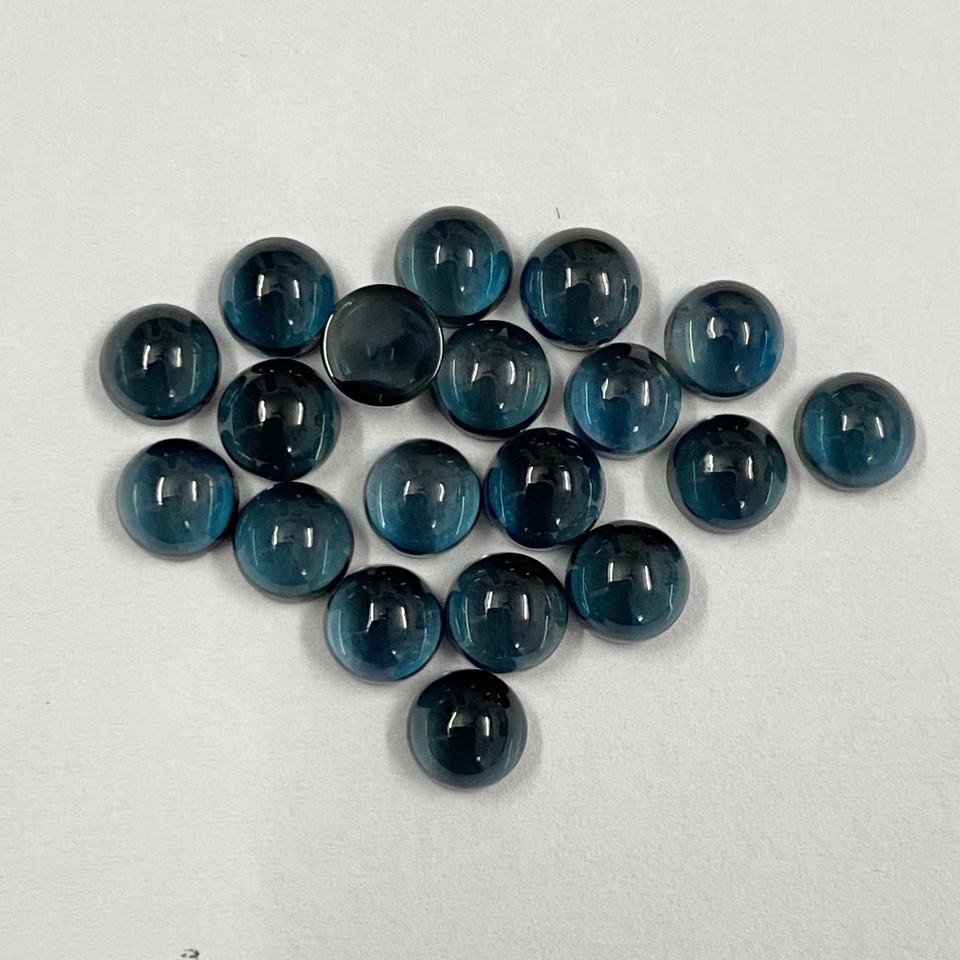 พลอยโทแพซลอนดอนบลูธรรมชาติคุณภาพ AAA ขนาด 9 มม. รูปทรงกลมแบบคาโบชอง ขายส่ง คริสตัลบำบัด พลอยแท้ มีสินค้าในสต็อกจากโรงงาน