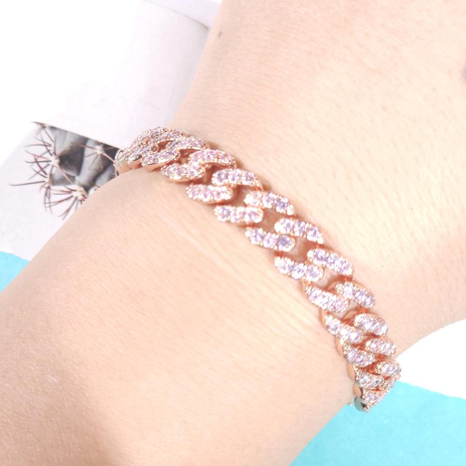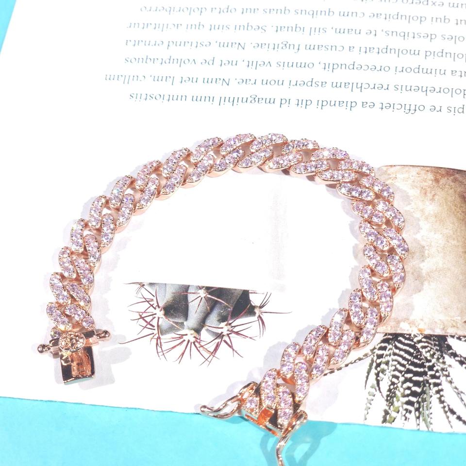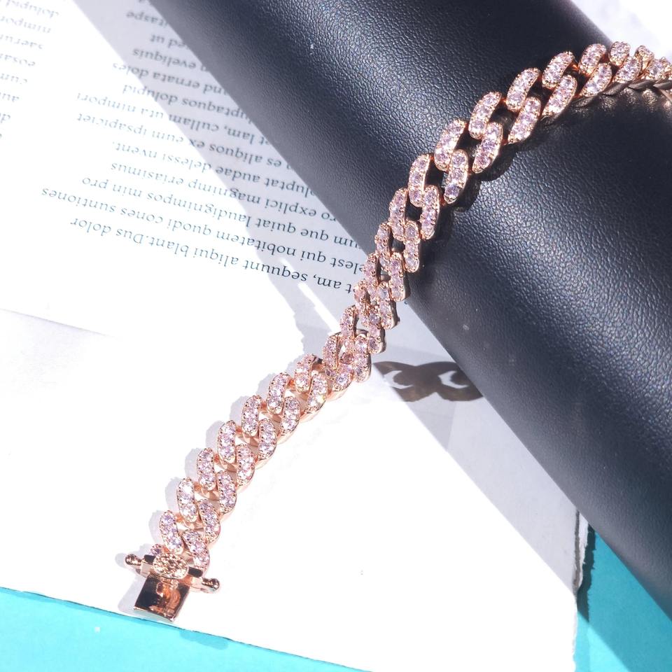 สร้อยข้อมือคิวบาลิงค์แบบฮิปฮอปประดับเพชรโมอิสซาไนต์ทรงกลมขนาด 9 มม. ชุบทองคำสีชมพูบนเงินแท้ 925 สำหรับขายส่งเครื่องประดับ