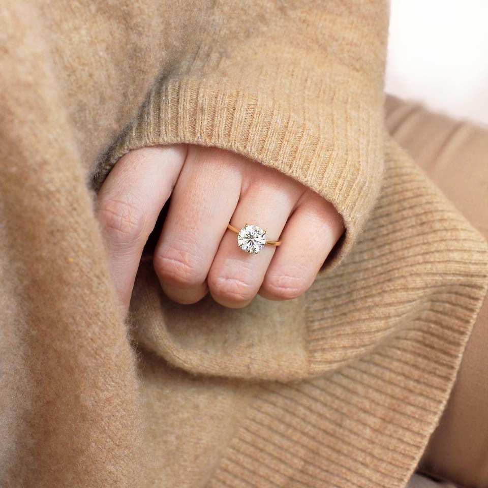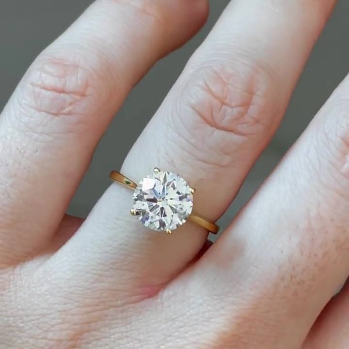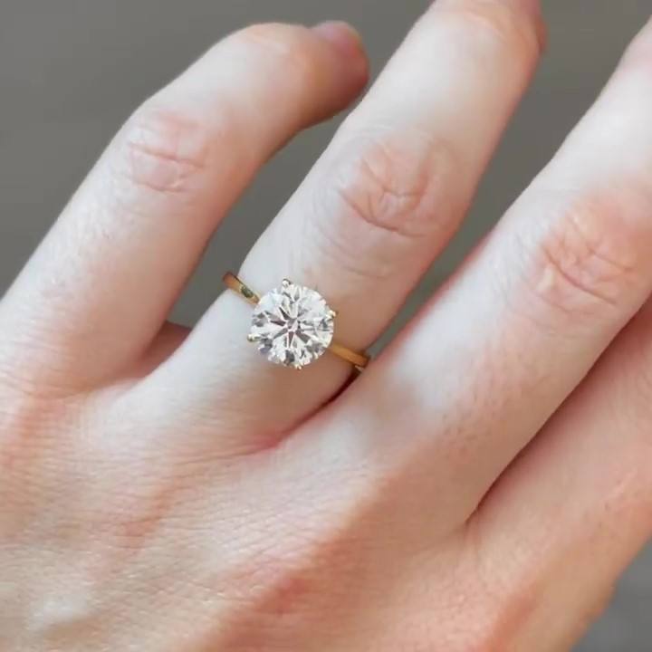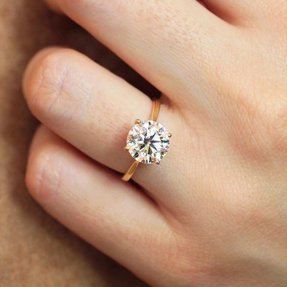 แหวนเพชร CZ สีขาวทรงกลม9มม. สีทอง | เครื่องประดับเจ้าสาวคลาสสิกสำหรับผู้หญิง