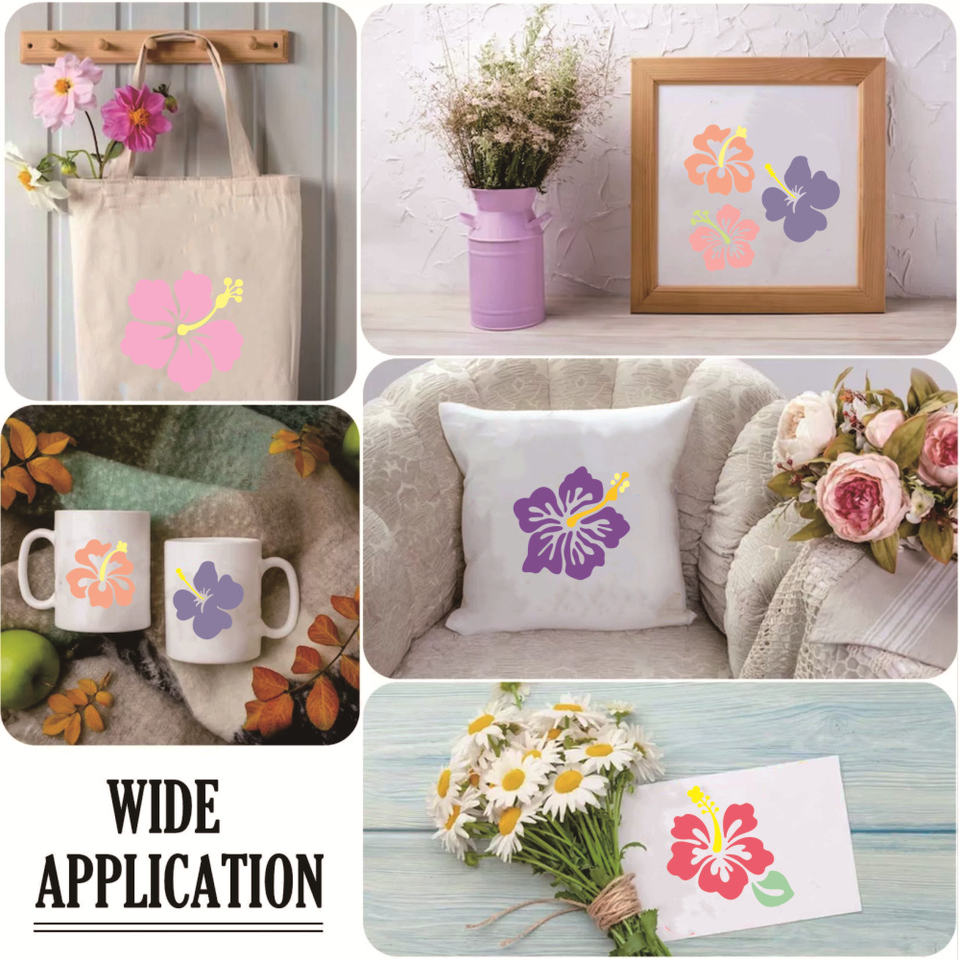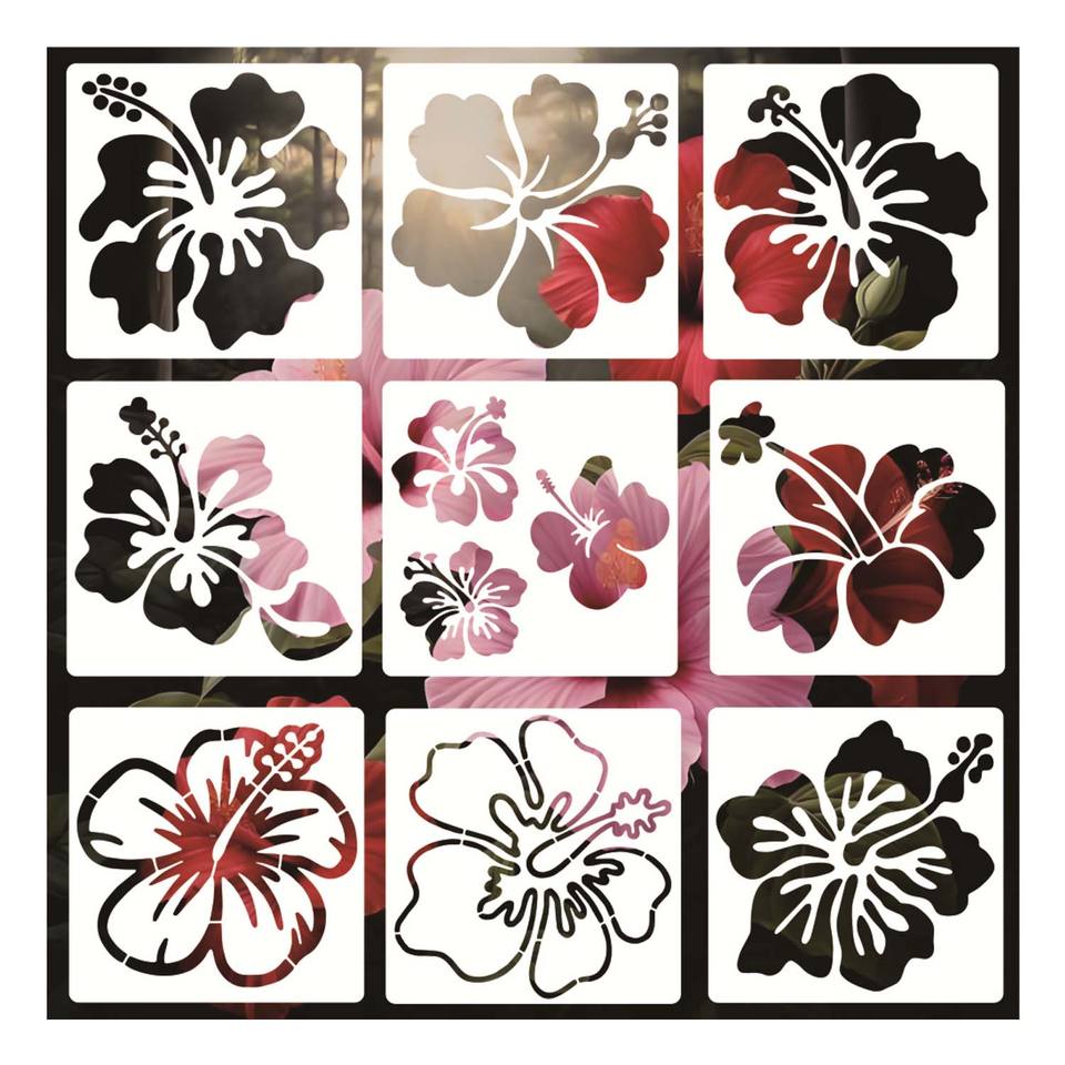 9pcs Hibiscus Painting Stencils 5.9inch Tropical Flower Drawing Templates for Summer Art Craft Wood Home