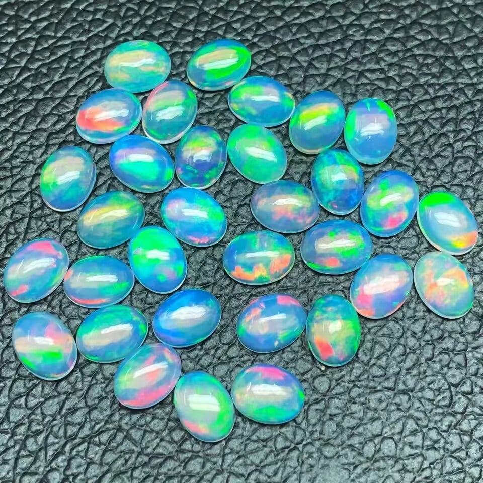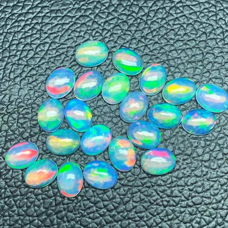 9x11mm Natural Fire Ethiopian Opal Flat Oval Cabochon Calibrated Size Loose Genuine Gemstones For Making Jewelry At Best Price