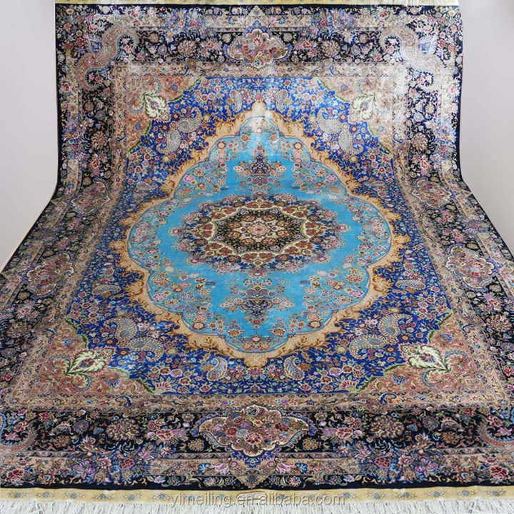 9x12 Large Blue Handmade Persian Silk Carpet Hand Made Luxury Estate Carpets and Rugs for Dubai Uzbekistan Russian Living Room