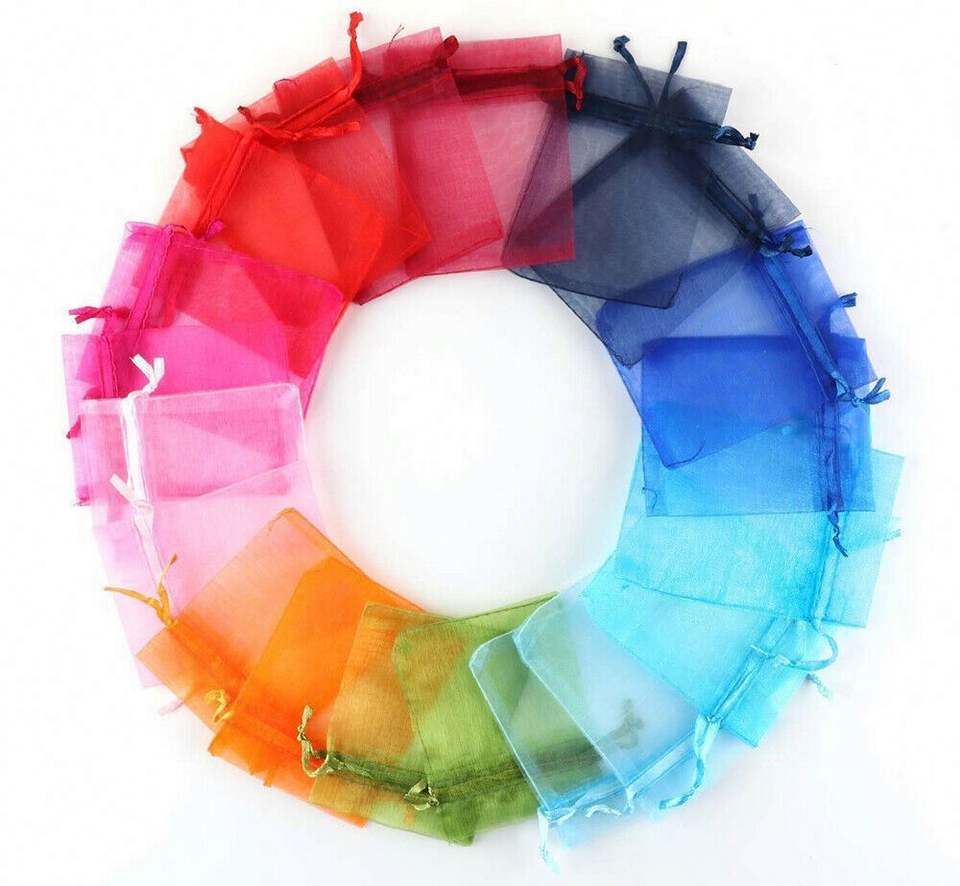 ถุงออร์แกนซ่าสีสันสดใสขนาดเล็กแบบมีเชือกผูก สำหรับใส่ของขวัญหรือเครื่องประดับ สำหรับงานแต่งงาน ขายส่งขนาด 9x12 นิ้ว รีไซเคิลได้