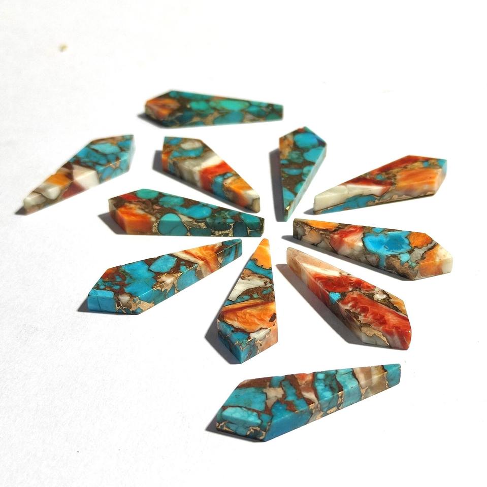 พลอยเทอร์ควอยซ์ทองแดงทรงไคท์แบบคาโบชอง ขนาด 9x18 มม. แบบหนามแหลม สำหรับร้านค้าออนไลน์ หินแท้ ราคาโรงงานขายส่ง