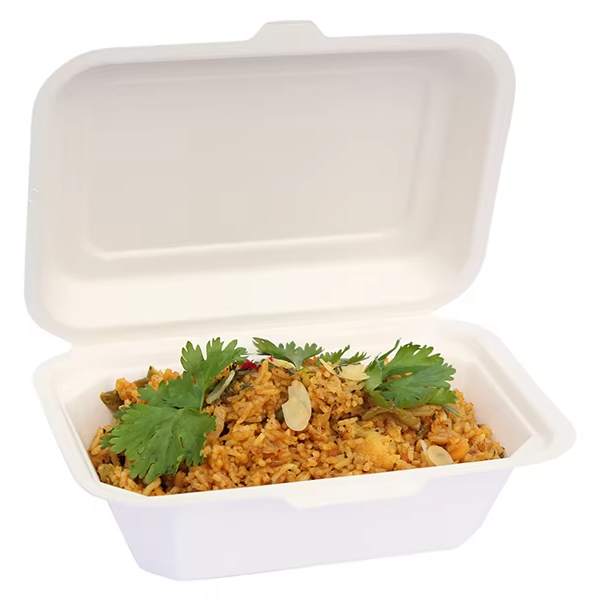 กล่องใส่อาหารฝาพับทำจากชานอ้อยขนาด9x6นิ้วกล่องใส่อาหารกลับบ้านได้พร้อมฝาปิดที่ปลอดภัยเหมาะสำหรับการจัดส่งและการจัดเลี้ยง