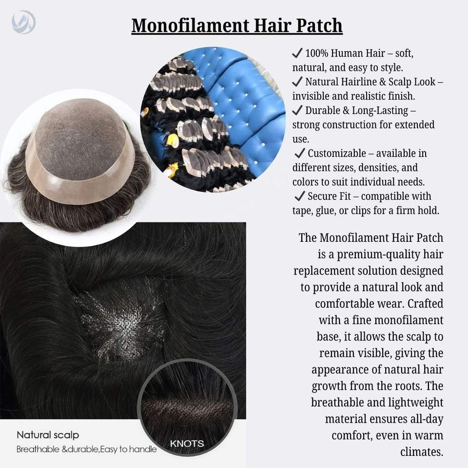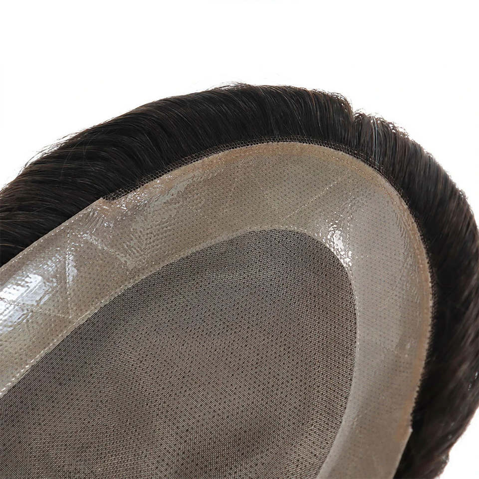 วิกผมเลมีขอบแบบอินเดียขนาด9X6วิกเสริมสำหรับผู้ชายเทคนิคการเสริมฐานแบบโมโนเนื้อตรง