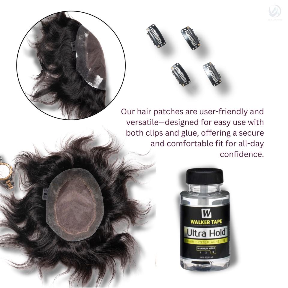 8x6สำหรับแพทช์เส้นผมขอบ/วิกผมสำหรับผู้ชายดีไซน์เส้นเดี่ยวแบบอินเดียพร้อมเทคนิค PU ผมแบบตรง