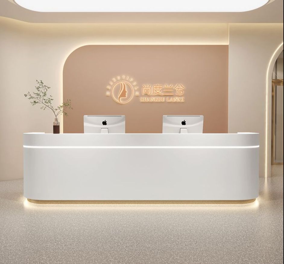 เคาน์เตอร์ต้อนรับแบบโมเดิร์นสั่งทำพิเศษปี 2026 สีขาวสำหรับสปา