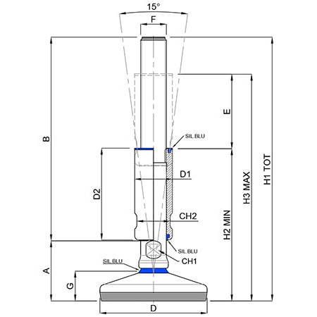 A-88 01 ขาตั้งปรับระดับ 27694/3A สแตนเลสสตีล ปรับได้ รองรับสุขอนามัยสำหรับเครื่องจักรอาหาร