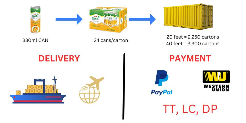 Product name:OEM manufacturer Vietnam Camel Orange Juice 330ml can tinned