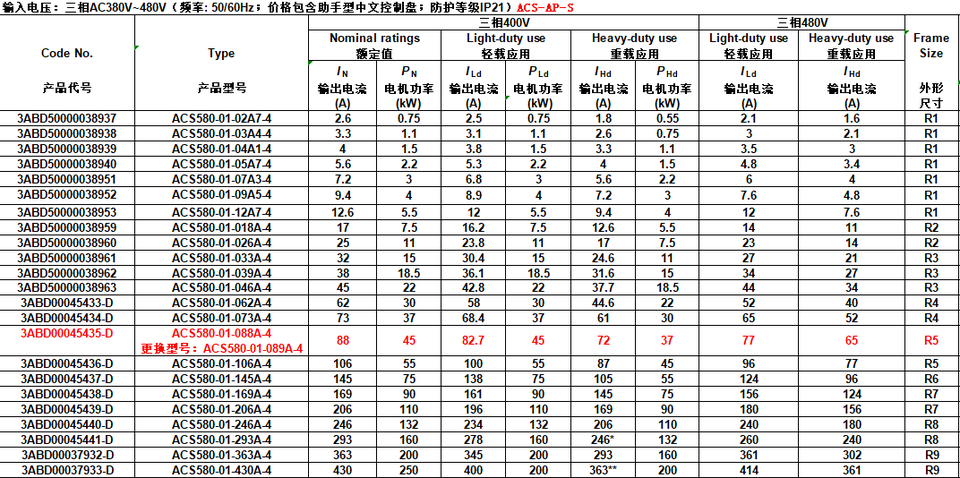 acs580หมายเลขรุ่น